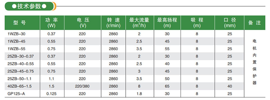 1. 電泵具有自吸功能,只須在初次使用時(shí)將泵腔內(nèi)注滿水,以后使用時(shí)無須注水即可使用;