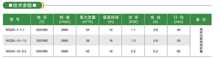2. 小顆粒的石子都能通過,采用流道式葉輪,大大提高水泵抗堵 塞能力,全揚程設(shè)計。